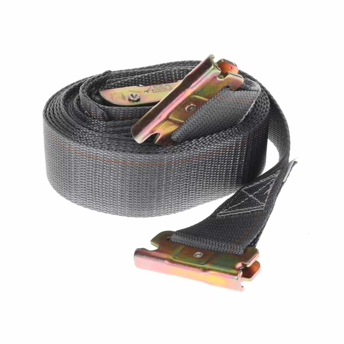 The durable hardware of this Logistic Strap is made from heat-treated carbon steel for enhanced strength. The Kinedyne 910 Cam Buckle makes it quicker and easier to control the tensioning of the Kinedyne grey 4900G webbing. This webbing is manufactured under our direct quality control with a tight polyester weave to enhance its durability for a stronger hold over your cargo. Once you click our Kinedyne FE8306-1 Spring Loaded Series E or A Fittings into the Series E or A Track you have mounted in your trailer, you'll provide a solid hold that works to keep your Strap tightly securing your cargo.